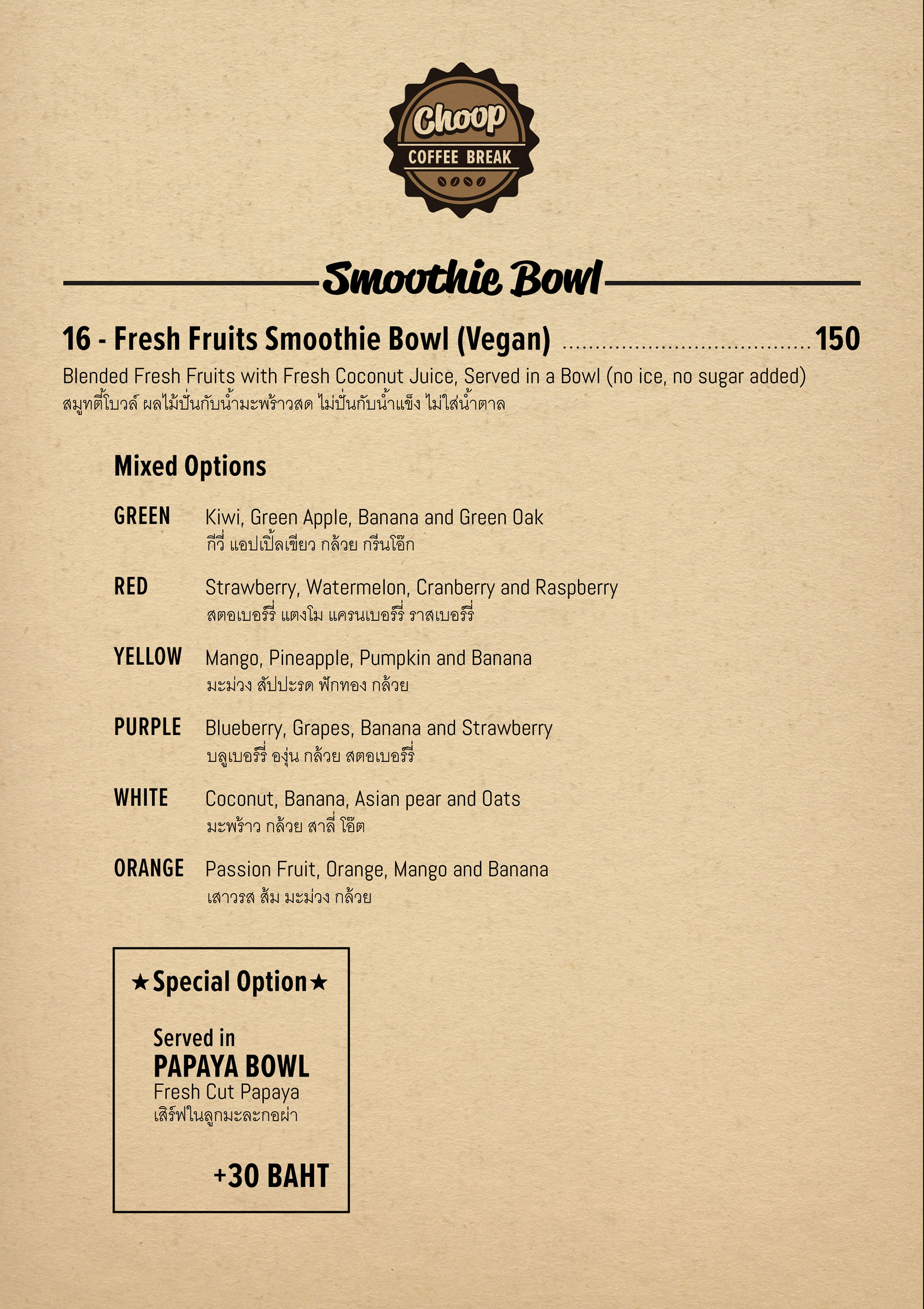 The client wanted to keep it simple and easy to understand. He required 2 languages on the menu, English for the foreign customers and Thai for the locals.